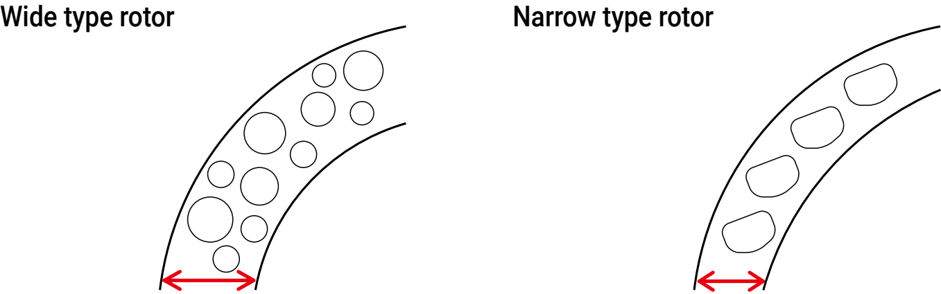 Narrow type 2 piece rotors are not compatible to brake caliper for Wide type rotor because of interference.