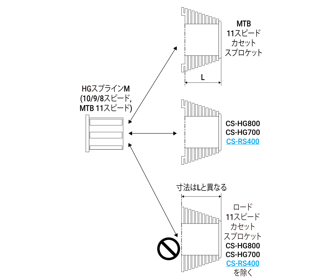 *4 ロード11スピードのCS-HG800 / CS-HG700 / CS-RS400は、HGスプラインMと互換性があります。