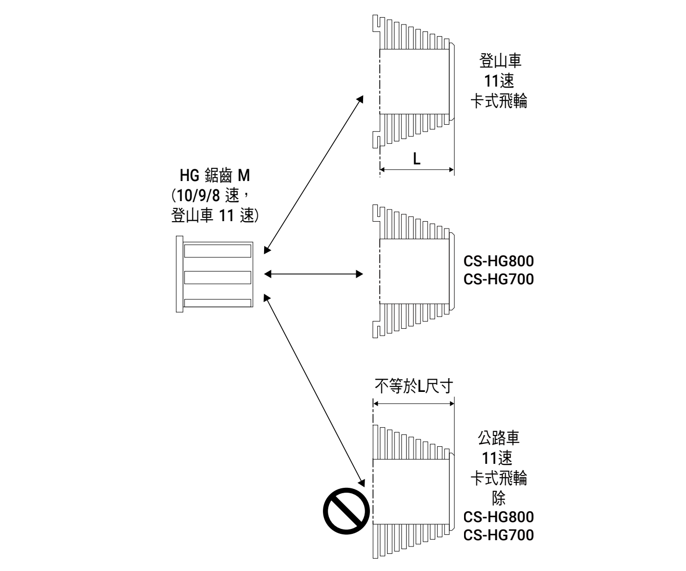 *4 公路車 11 速的 CS-HG800 / CS-HG700 可相容於 HG 鋸齒 M。