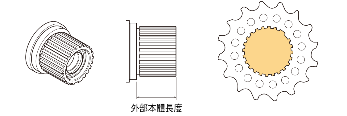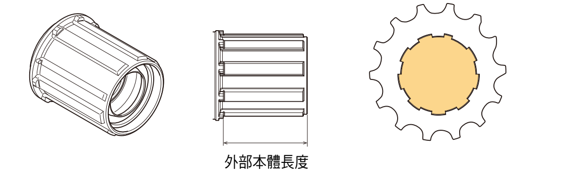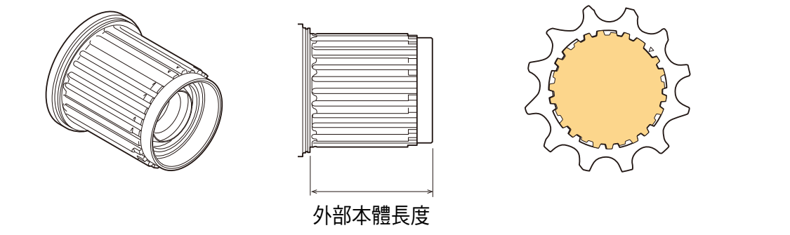 外部本體長度是指單體裝置卡式飛輪接觸面至單體裝置尖端的長度。