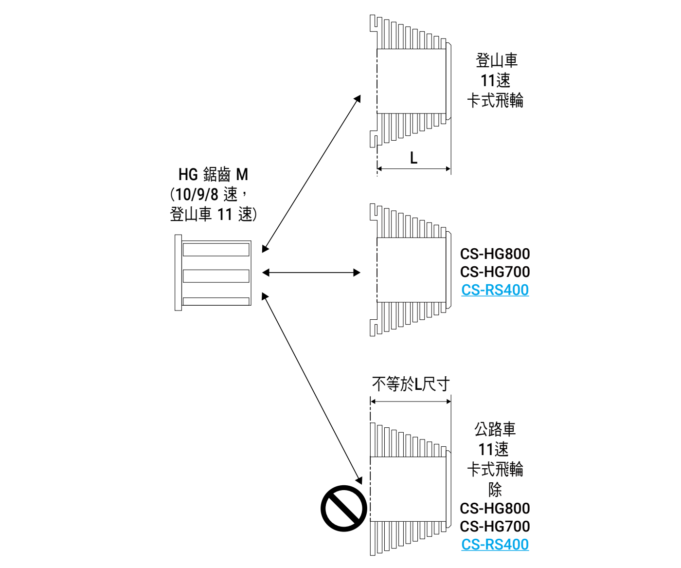 *4 公路車 11 速的 CS-HG800 / CS-HG700 / CS-RS400 可相容於 HG 鋸齒 M。